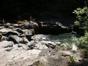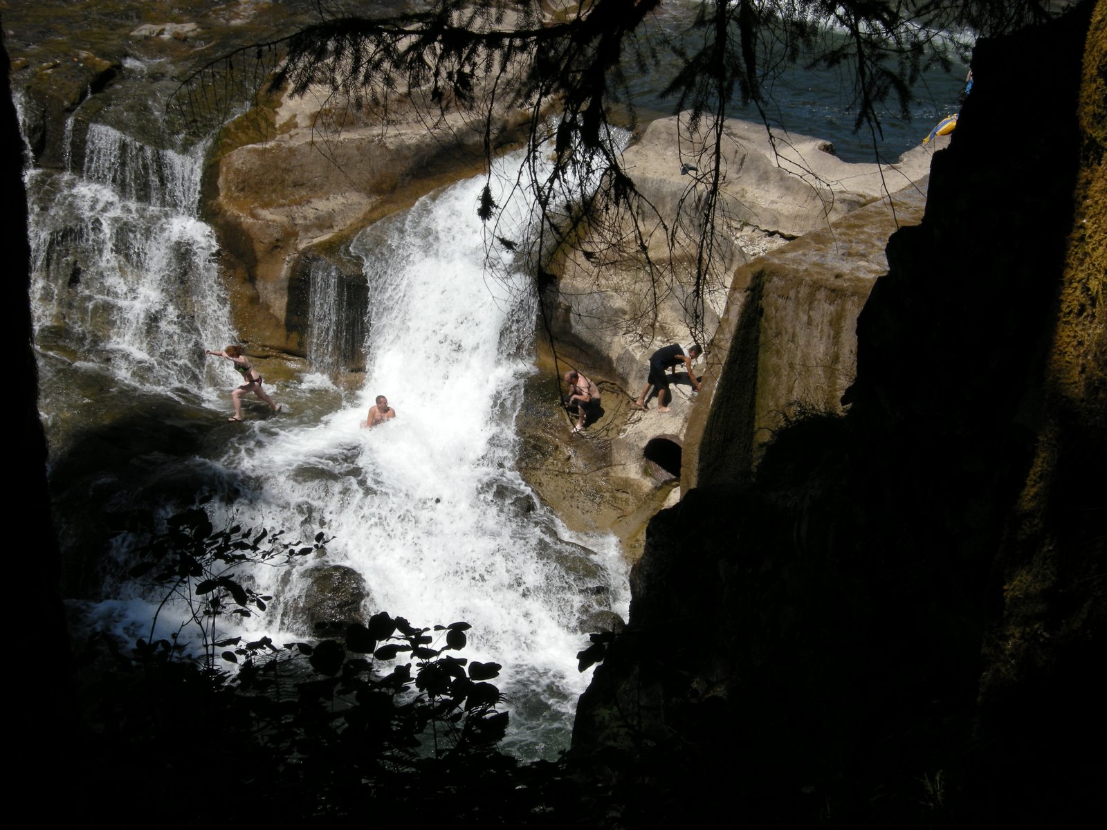 We drove downriver to the Steamboat Creek turn and then up 5 miles or so to Steamboat Falls. Another fall that is right at the road in the campground, and this one was full of people having fun and swimming, as well as playing in the rushing water. Little Falls, farther down along Steamboat Creek was busy as well, with several carloads of young people at the wide place in the road overlooking the falls. Neither of them seemed particularly impressive, but it did look like it would be fun to play in if you didn’t mind being there with all those people.