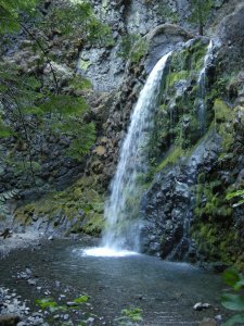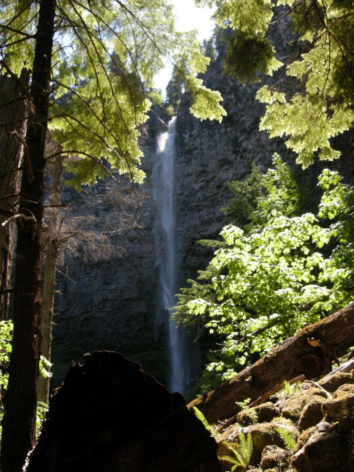 At milepost 60.5 is the trailhead to Watson Falls, the highest in southwest Oregon. The half mile hike is a well maintained trail with switchbacks and some steep areas, but still quite moderate. The fall itself it tall, thin at this time of year, and delicate, quite lovely. Again, the surrounding forest was filled with blooming rhododendrons. We met a couple from Colorado, including a very elderly lady who hiked the entire trail with her cane. She was very determined and we were very impressed. What a trooper. Her husband said that on their trip to Washington she wanted to see only two things, Crater Lake and Tokeete Falls. They told us that Tokeete Falls was closed due to winter damage, so they hiked this one instead. The winter damage was from the winter of 2007, not even last year, but the forest hasn’t had the money to repair the trail so it is now inaccessible. Tokeete Falls is supposed to be the most impressive and beautiful fall on the tour. I hope to see it someday.