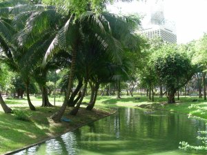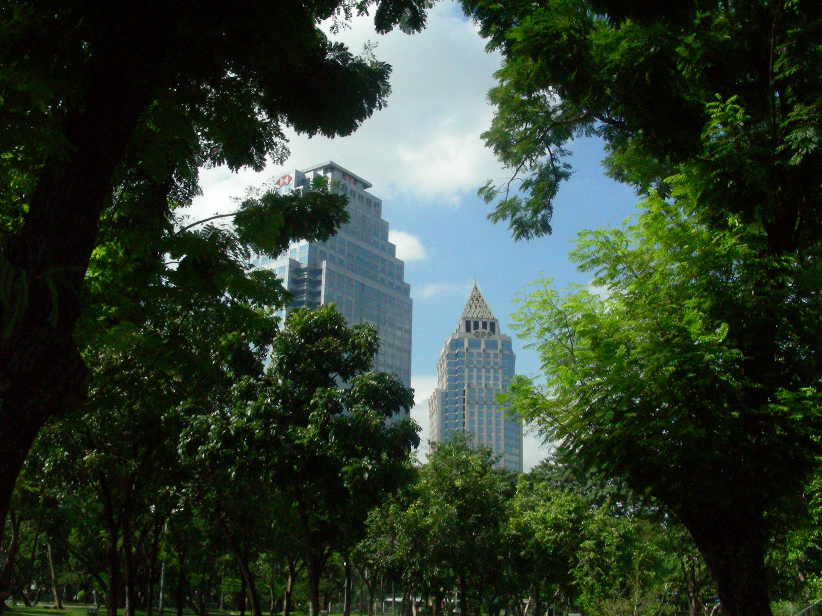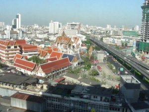 oh yes, back to Lumpini park. today we walked there, and believe me, walking in Bangkok is a major undertaking. Getting across the streets is on the same level and Jeanne’s kayak stories!! But in Lumpini park things were tranquil, a huge oasis in the midst of the frenetic city, and we got pictures of huge kodo dragon lizards lying around in the water under the bridges. Later we boarded the skytrain for riding all over the city. It was a big surprise, since our hotel is in one section, and we have been driven around by buses to some of the others. Until we got elevated, we had no clue that this city was so huge and full of really big big skyscrapers, and lots of them. Funny thing is that they are everywhere, not just in a district as we are used to seeing in the US.