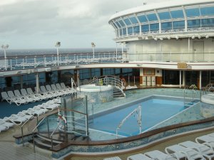 We toured the ship a bit, searched out the Lido deck and the lunch buffet in the Horizon café and waited for our sailing time at 5. The food was fine, not particularly fancy,but adequate, and everything on the ship was really nice. The ship itself isn’t quite as dramatic in the Atrium area as our Royal Caribbean ship was, but it was still lovely. Probably a bit more classy, with lots of dark wood, and lovely art everywhere. The service was excellent throughout the cruise; in spite of some of the reviews I read saying it wasn’t that great, I was impressed.