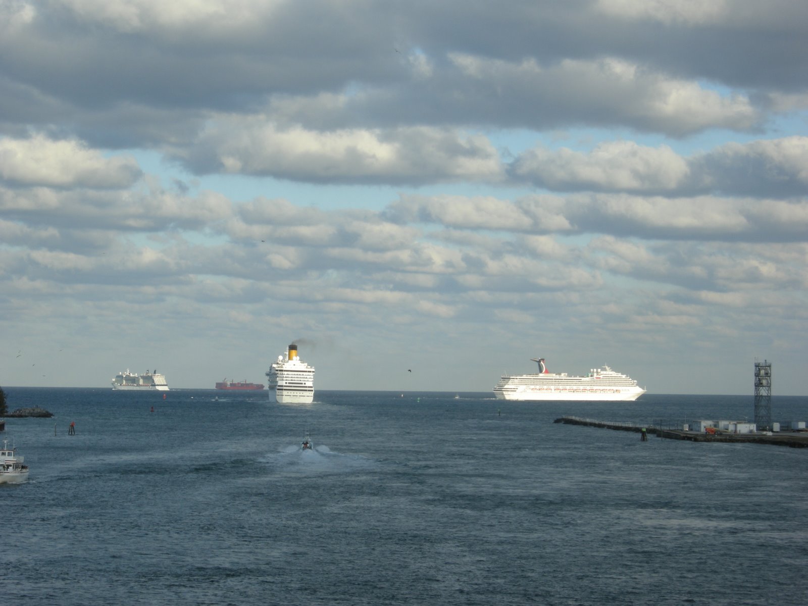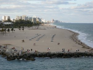 Fort Lauderdale is a huge cruise port, and there were 5 big ships leaving on this Sunday evening,heading for various parts of the Caribbean. The parade of ships was fun, and people in their condos along the water stand in their balconies and wave at the ships leaving port. Thinking about how many people were on the sea that evening was impressive, considering