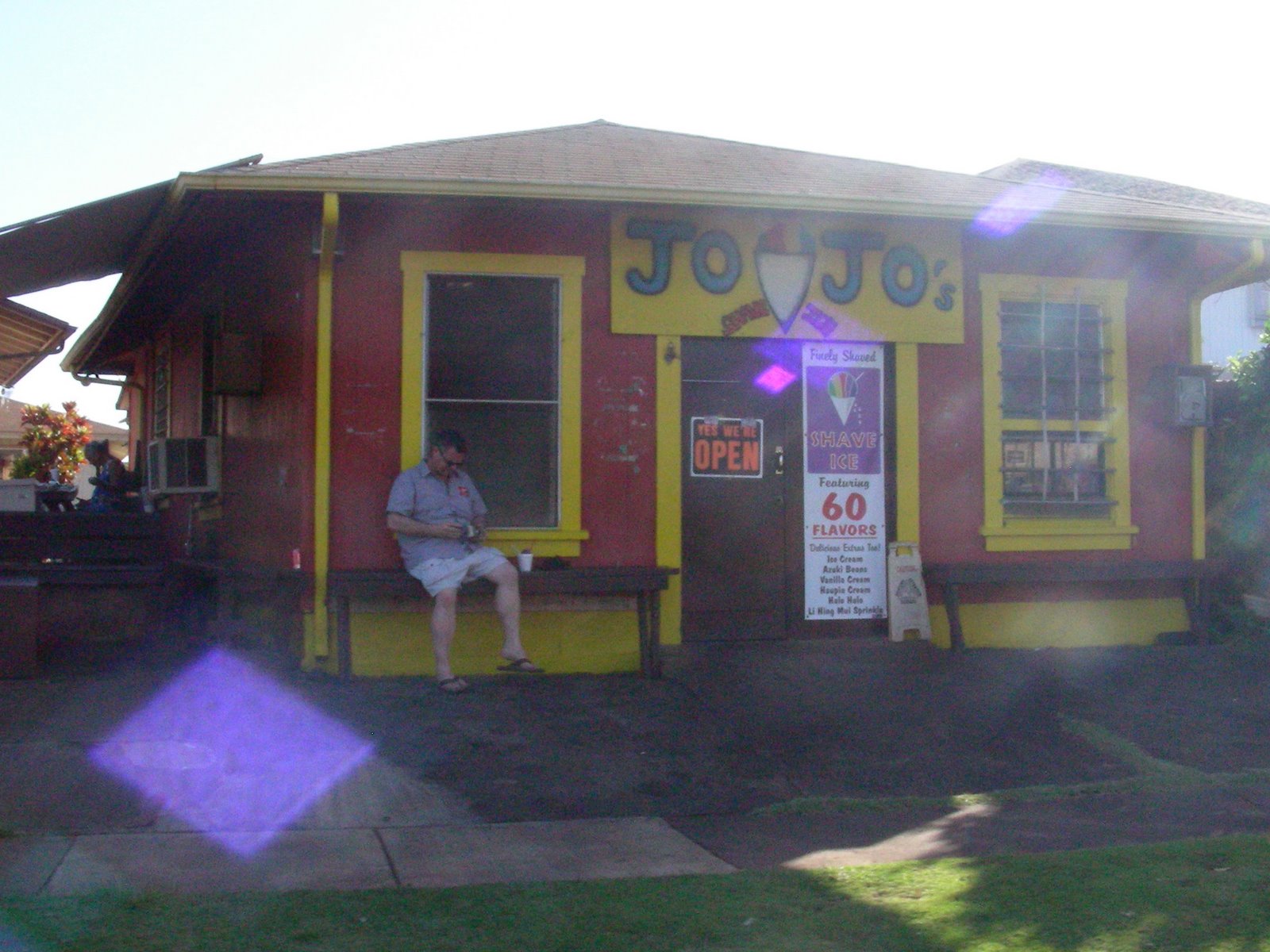 Drove back down the canyon to Waimea and had the other great delight of the Shrimp Factory coconut shrimp, and my last incredible tropical shave ice, while Mo found a beach dress in the shop we had visited earlier. Perfect.