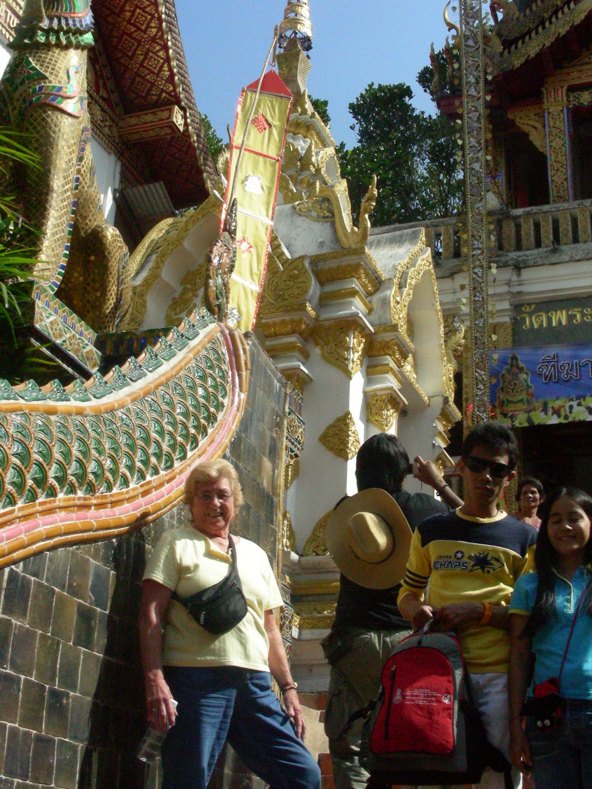Also amazing was that it was mostly Thai people, we were one of very few non-locals. That was fun, too. Everyone was incredibly friendly, and helpful. We just happened to be there when many school kids were also there in their school uniforms, in groups, all giggling and laughing. Several of the groups had been charged with practicing their English, and Mo and I were easy targets several times, while they gathered around and asked us questions, filling out our answers in their notebooks. English is taught in all the schools, and the Thai kids are encouraged to become proficient.