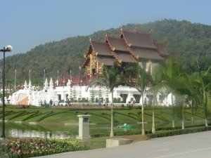 Today, the smog lifted a bit, and once more, Mo and I opted out of the group tour to some Chiang Mai factories and decided instead to find the annual flower show I had read about before we left the US.