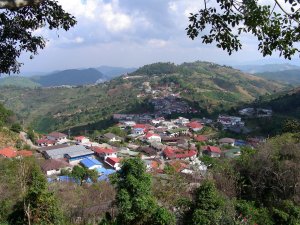 It seemed like a bit of a long day, though, and we were glad to arrive at our hotel in Chiang Mai, the Empress. Chiang Mai is a mountain town as well, and somehow I imagined it to be cleaner and fresher, but once more the exhaust from all the deisel engines makes the air rough and my eyes burn constantly. In the distance, from our hotel room, we can see the Buddha at Doi Suthep. I know this is a beautiful city, but at the moment it just felt big and dirty, with lots of traffic and bustle. Especially after the beautiful trip through the mountains to get here.