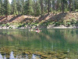 :By this time, Mo’s brother Don had found our campsite to join us for the rest of the afternoon. I also called an old friend in Coeur D’Alene who agreed to make the long drive to the west side of Spokane to visit. While we waited for Laura to arrive, Don and Mo and I went off for a bike ride on a small portion of the Centennial Trail that is in Riverside State Park. This trail extends from Nine Mile Falls through Spokane east into Idaho ending on the east side of Coeur D’ Alene Lake. I remember when the trail was just a gleam and a plan, and before I left the area almost ten years ago it was fairly well developed. It is a great place to ride. In fact, there are several trails in this part of Washington and Idaho that have been developed for biking, many from old railroad right-of-ways.
