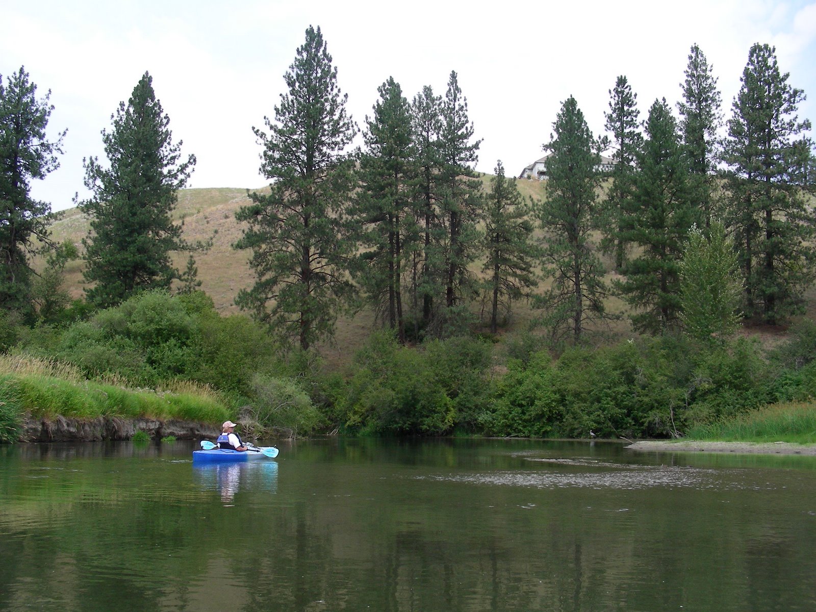 The drive from this park to Spokane is pleasantly uneventful, without much to see except the river itself, huge and wide. I have traveling it far too many times, however, to pay much attention any more to the charms of Eastern Oregon and Eastern Washington, especially the area around the Tri-Cities. The most entertaining part of the trip was watching what the NUVI was telling us, and seeing her calculate the same routes I have used since I first started traveling these roads in 1972. We knew company would be coming for dinner so stopped at the huge and fabulous Kennewick Fred Meyer for supplies before continuing on into Spokane.